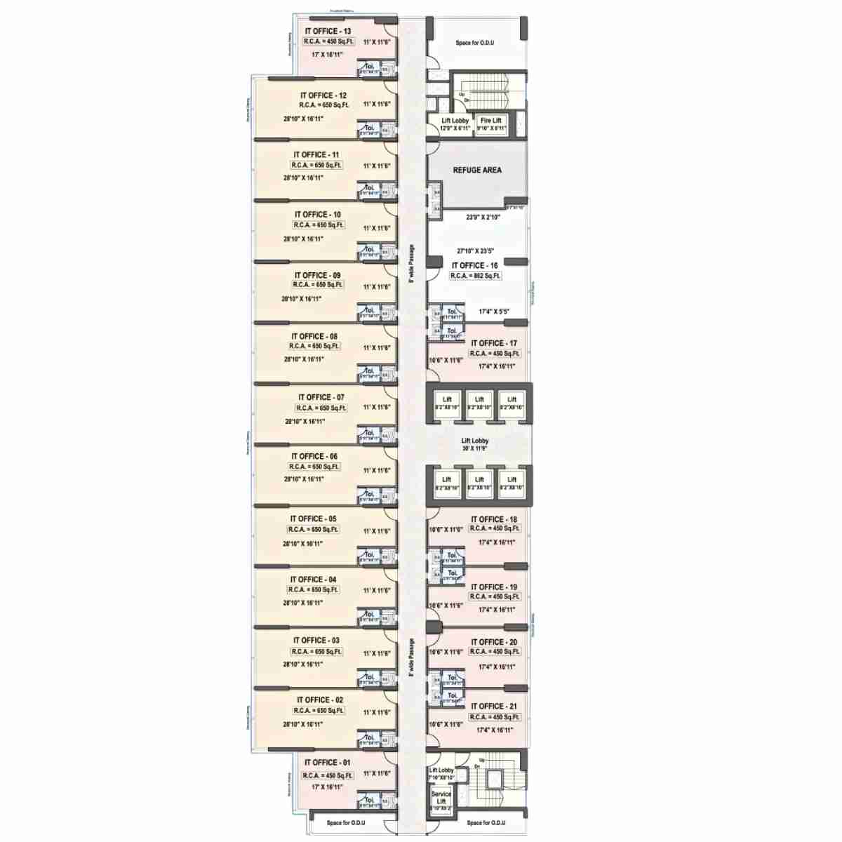 6 High-speed Elevators + Fire & Service Lift with Lift Lobby